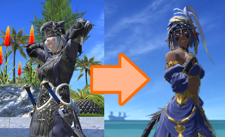 なので幻想薬(有料)を使ってミコッテからアウラに変えましたw アウラの中でも全体的に白がベースの「アウラ・レン」ではなくて黒がベースの「アウラ・ゼラ」でキャラクリしましたよー。